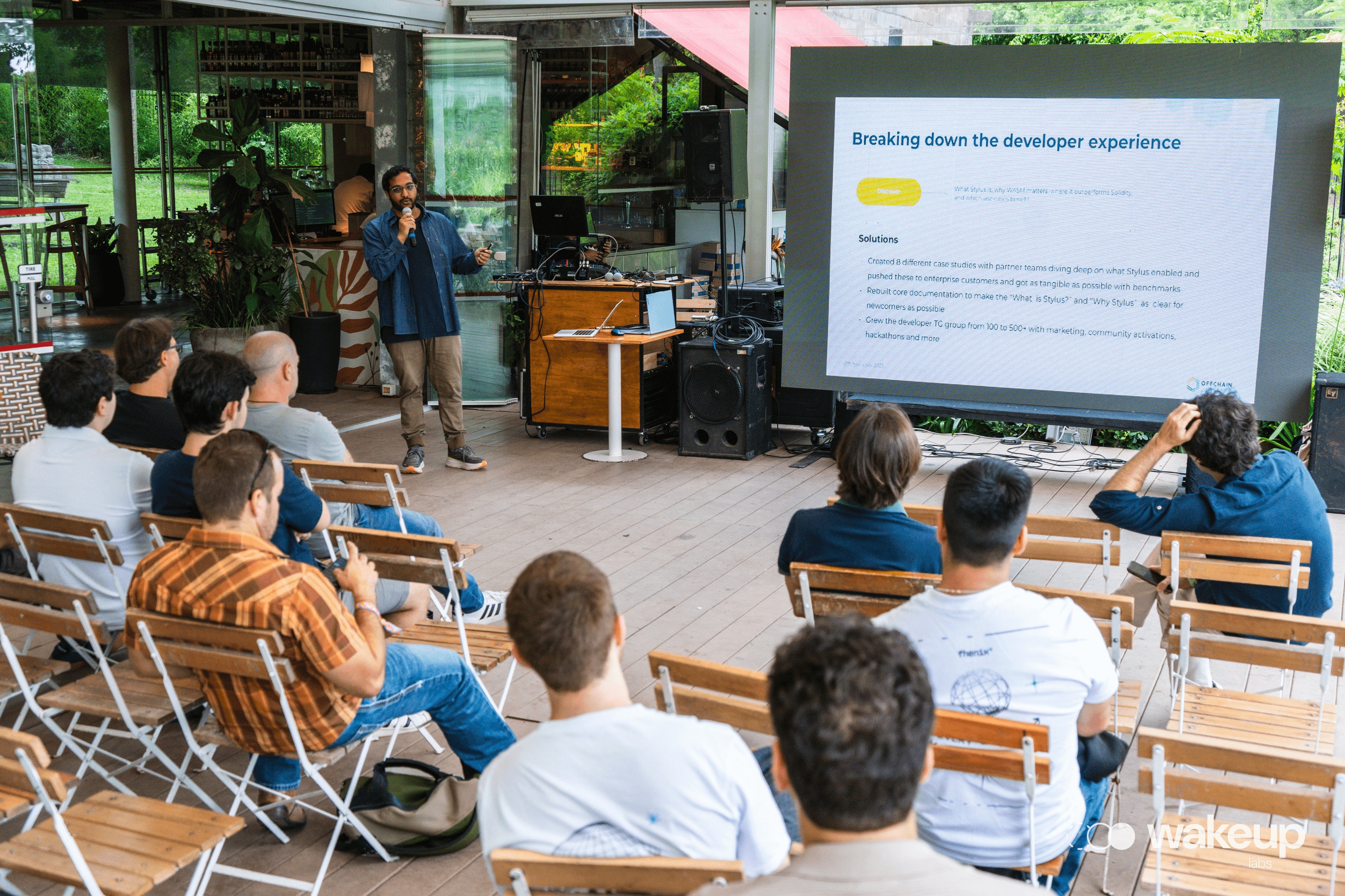 It was an intimate and intentionally curated 30–40 person gathering during DevConnect. Organized by WakeUp Labs with support from the Arbitrum DAO, the event took place at Tomate and brought together key teams, managers, and project leads contributing to Stylus who were in Argentina for the conference. Among the guests were several notable companies: VeloraDAO, Arbitrum Foundation, Overboost, OSO (Open Source Observer), Hack VC, Arbitrum DAO, Off Chain Labs, Rather Labs, Co-Builders, Sherlock, Uphold, 9Lives, Fuul, DZap, EmberAi, Usher, POAP, Quantum3Labs, Messari, Oak Security, Red Stone, Entropy Advisors, Walnut, and many more who were invited as speakers, making it a fantastic opportunity to connect.